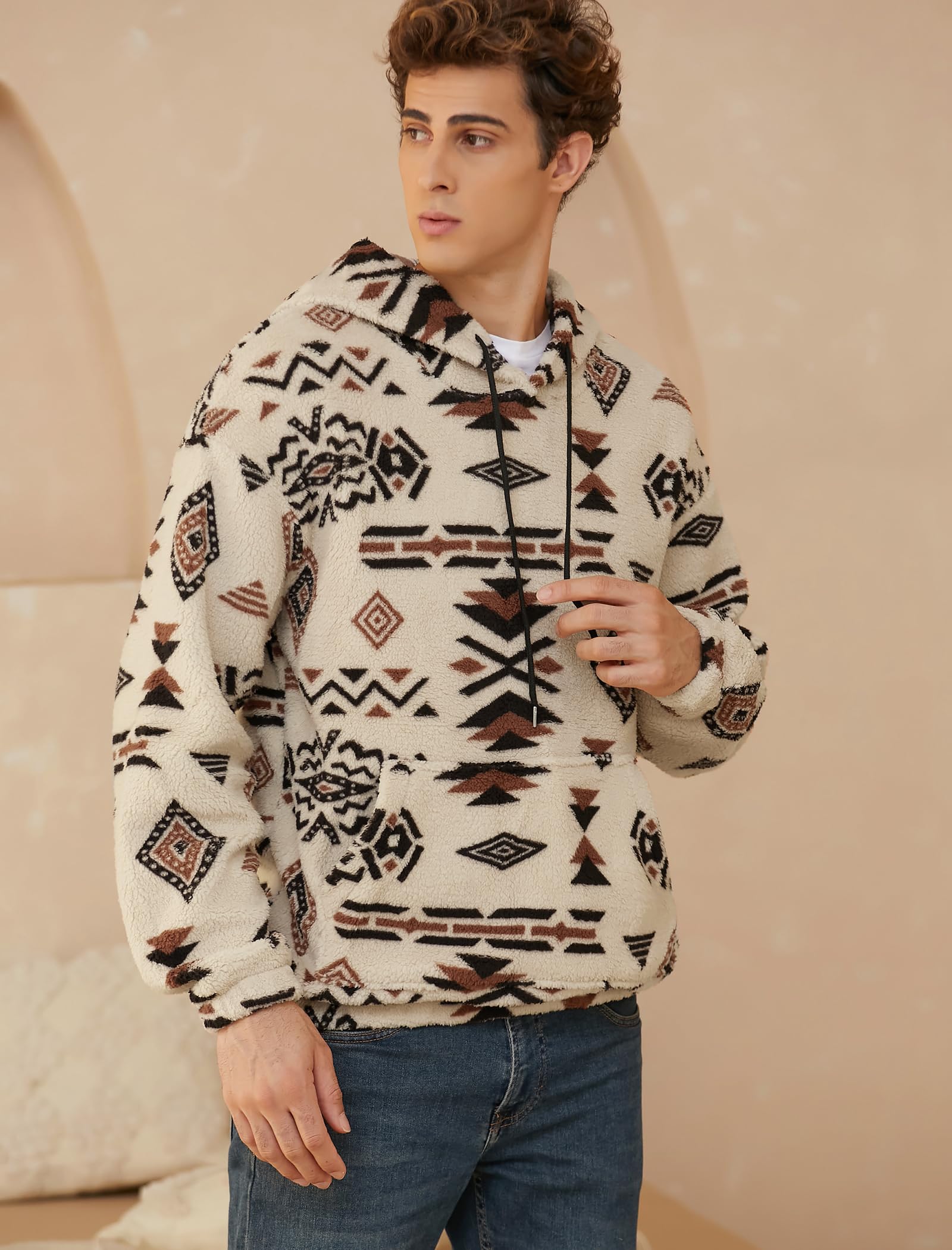 - Ethnic Geometric Print: This men's hoodie from ZAFUL features an eye-catching ethnic geometric print, adding a unique and stylish touch to your casual wardrobe. The intricate patterns and vibrant colors create a visually appealing design that stands out.