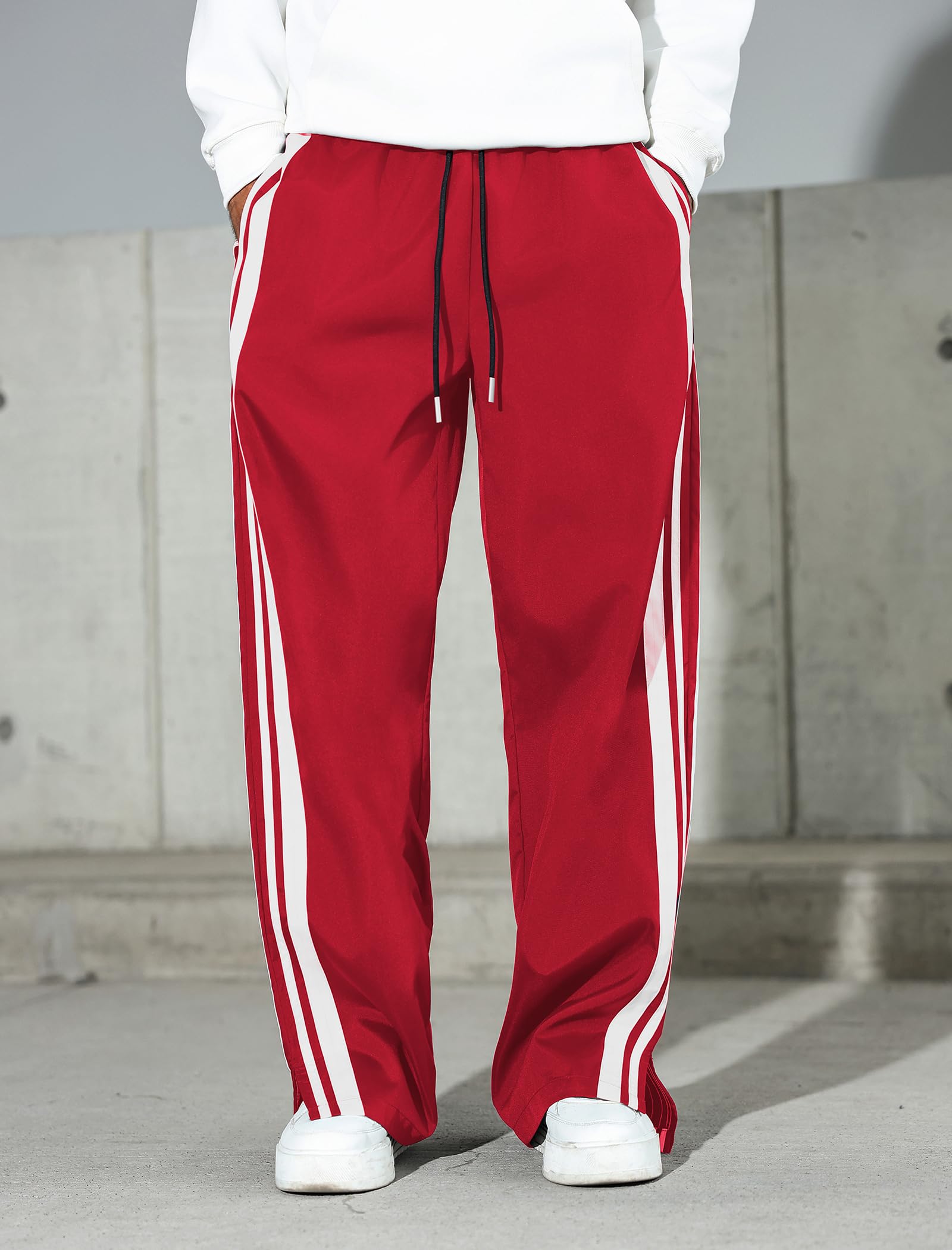 ZAFUL Mens Baggy Track Pants Parachute Color Block Side Stripes Slit Y2k Wide Leg Drawstring Pockets Casual Trousers