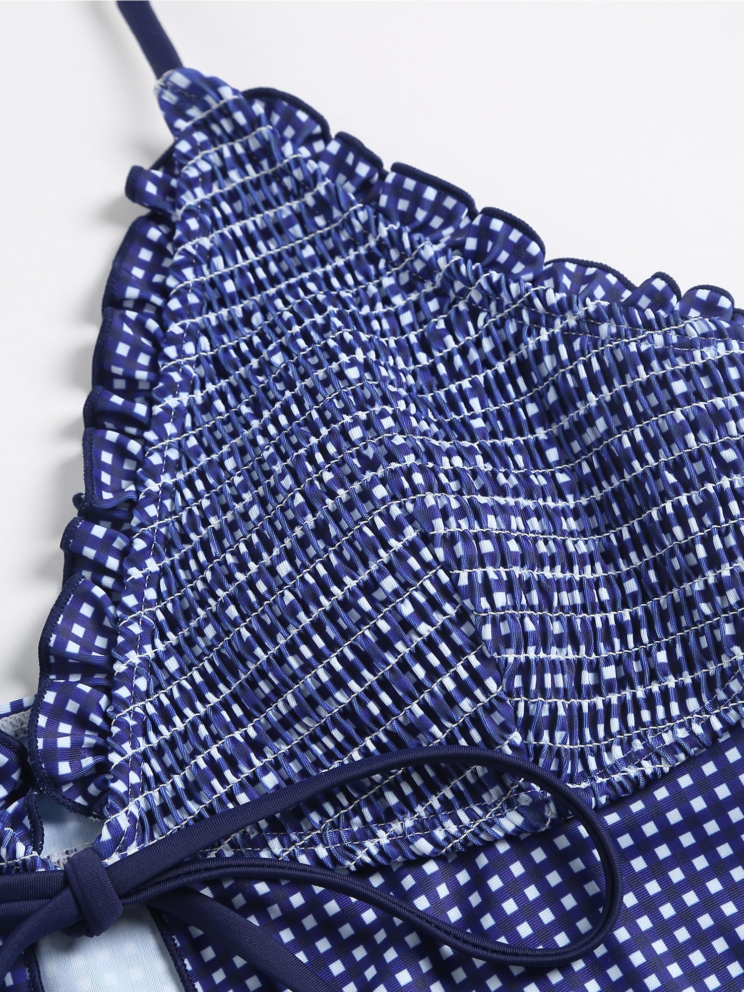 ZAFUL Tankini Tops for Women Smocked Ruffles Tie Front Bowknot Textured Tankini Top