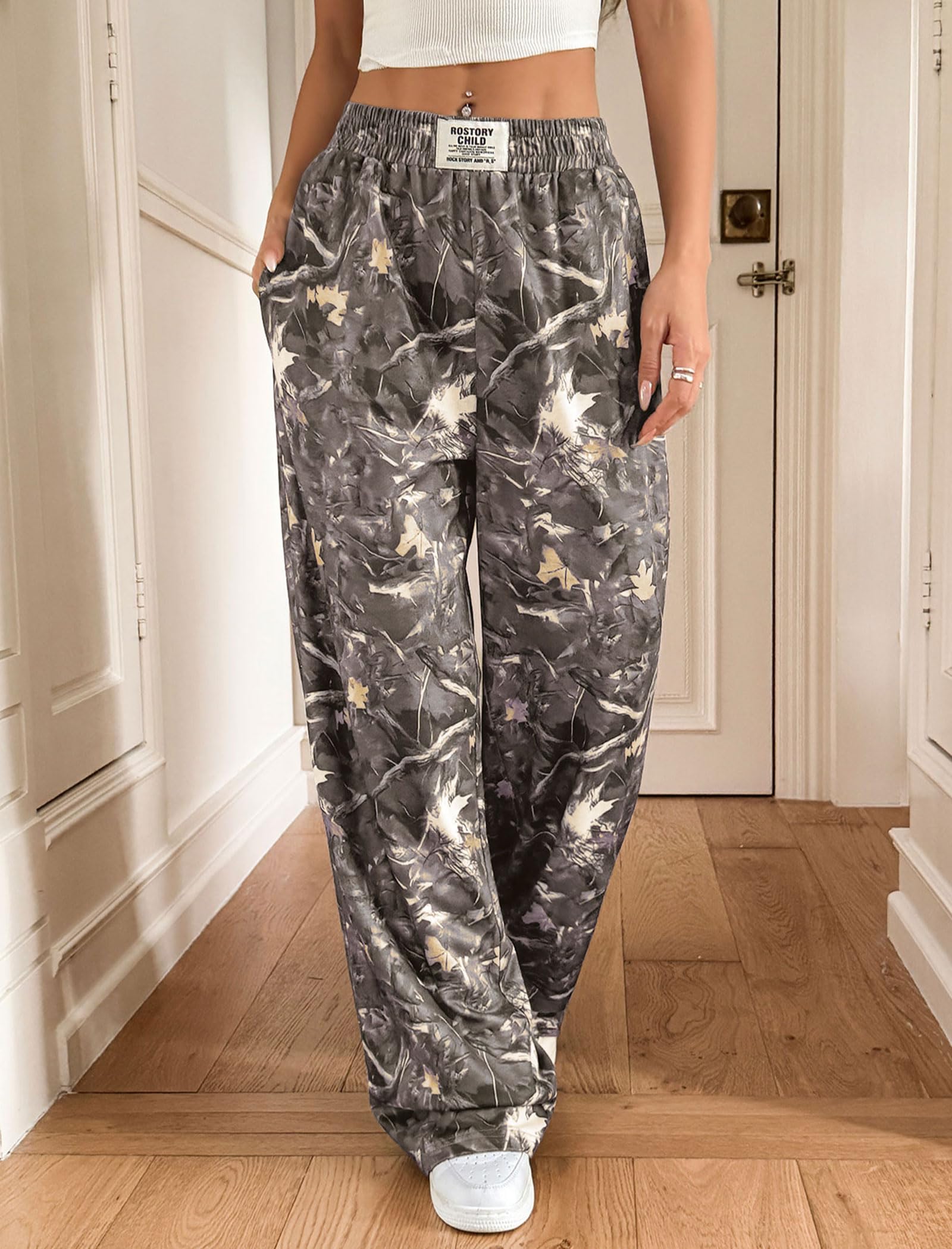 ZAFUL Women's Camo Sweatpants Y2K Elastic High Waisted Wide Leg Casual Straight Cargo Pants Joggers with Patch Detail