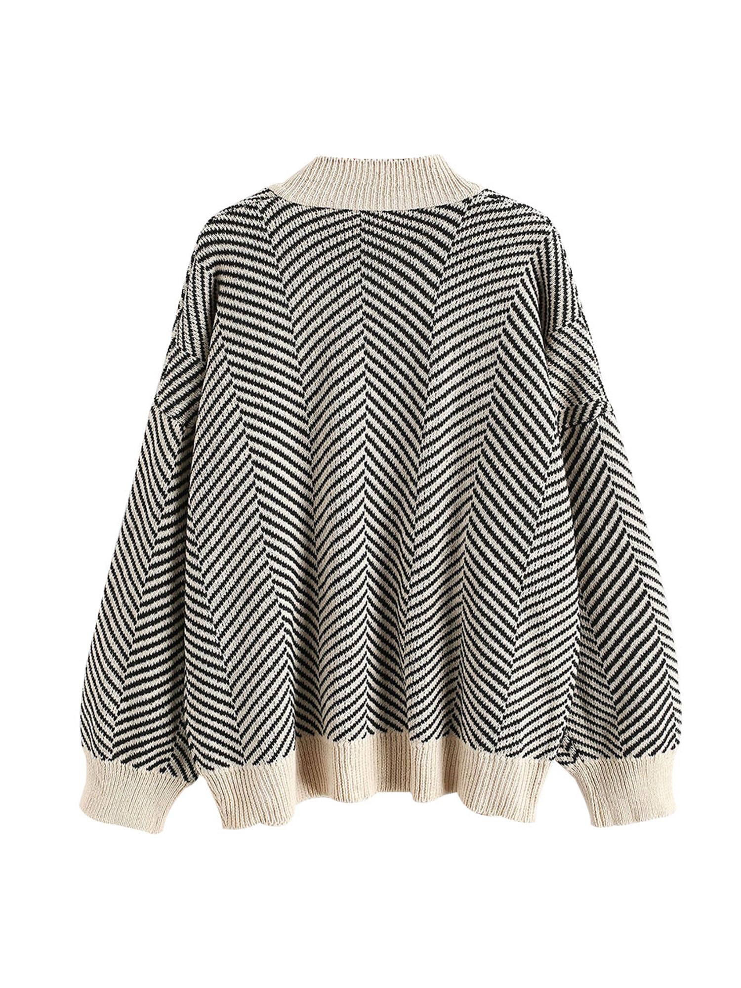 ZAFUL Women's Striped Cardigan Long Sleeve Button Up Open Front Knit Oversized Sweater—